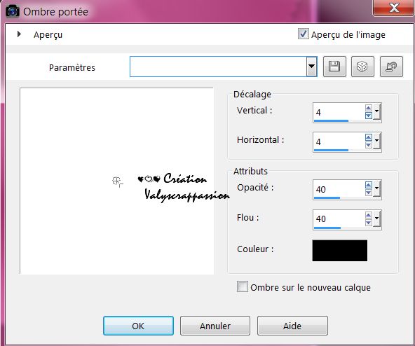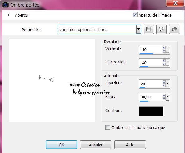 Effets, effets 3D, ombre portée -10/-40/20/30 noir