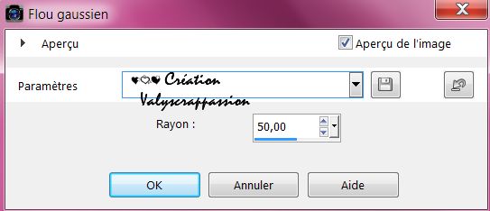 Calques, fusionner, calques visibles Réglage, flou, flou gaussien à 50